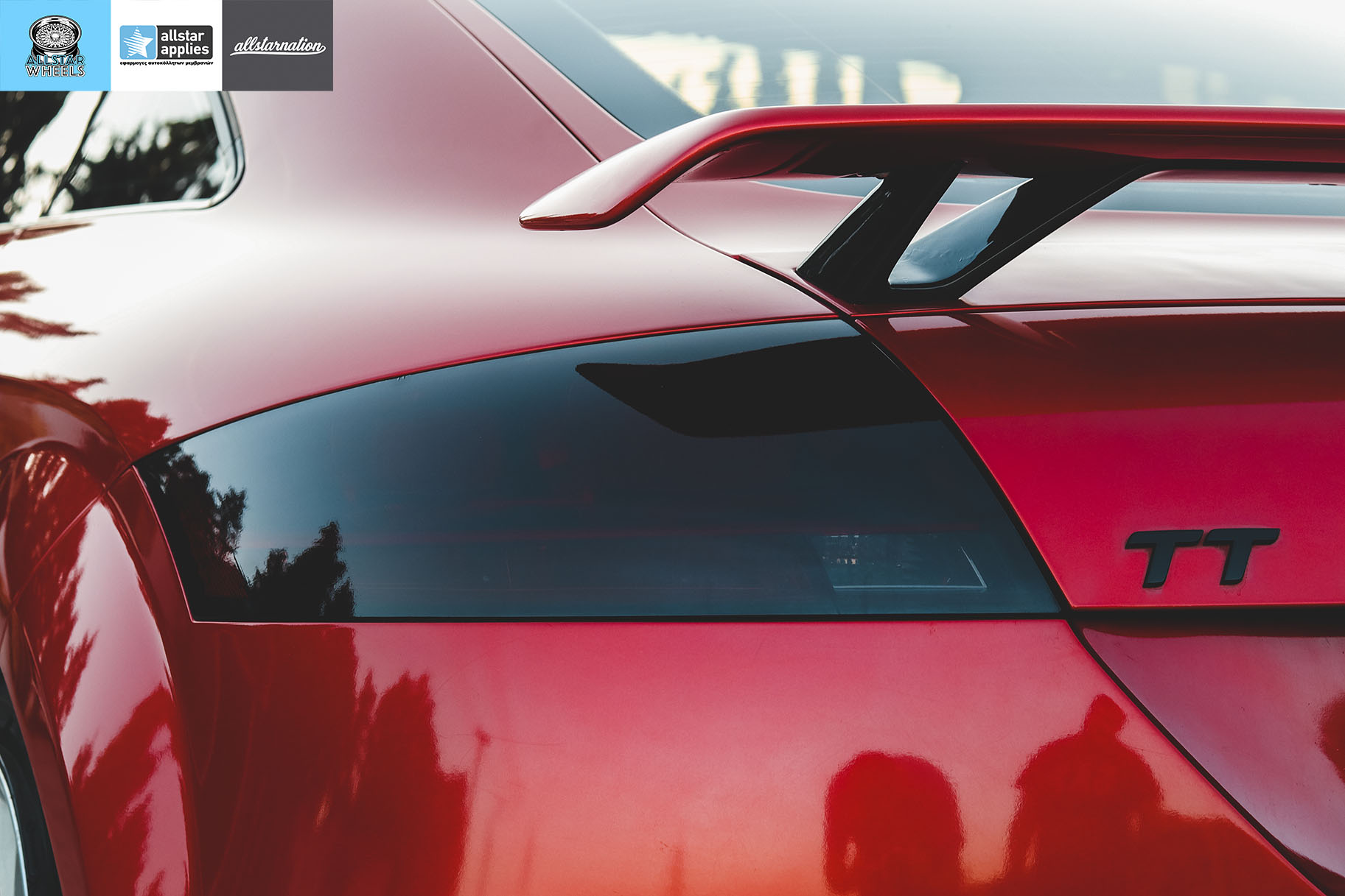Νέο Project Audi TT με εσωτερική επένδυση μεμβράνη red Alcantara. Περάστηκαν μεμβράνες αλλαγής χρώματος με μοναδικό χρώμα, Luscious Lips Red. Στην οροφή τοποθετήθηκε μαύρη γυαλιστερή μεμβράνη Hi Gloss καθώς και αντηλιακές μεμβράνες LLumar 55%. Στα φανάρια τοποθετήθηκε μεμβράνη Dark Smoke.