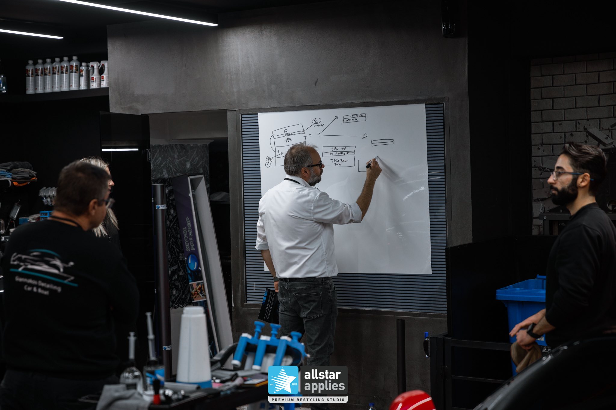 Η πρώτη μέρα ήταν αφιερωμένη στη θεωρητική κατάρτιση, ώστε οι συμμετέχοντες να γνωρίσουν τα μυστικά των Skyfol PPF, τις τεχνικές εφαρμογής και τα χαρακτηριστικά των διαφορετικών προϊόντων. Οι έμπειροι εκπαιδευτές της Skyfol παρουσίασαν μεθόδους, μυστικά και προσαρμογές για κάθε τύπο οχήματος.